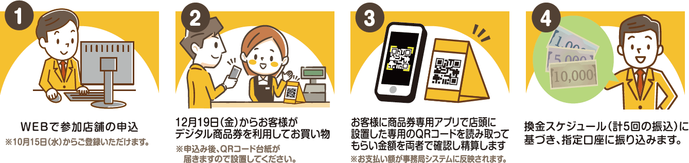 参加店舗登録から商品券換金までの流れ